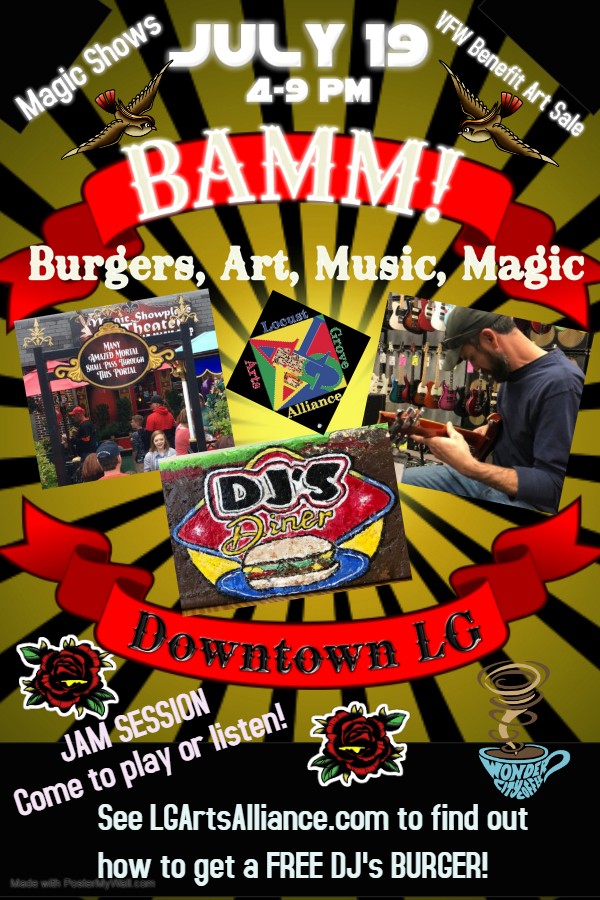 And in the LGAA gallery, a member art show/sale will be going on. Local artists will have works on display for you to purchase and all money will be donated to the VFW Building Fund.